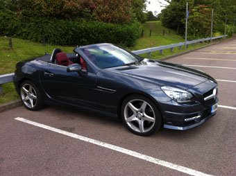 Day 1: A diesel roadster. That’s a bit odd. When the SLK was due to arrive I heard an oily noise from outside and rushed to the front window. It turned out to be a Transit van. When the Mercedes actually turned up I didn’t hear the engine but the nice lady who dropped it off had the roof down and was listening to Red Red Wine by UB40. A timely reminder that some things sound worse than a diesel engine.