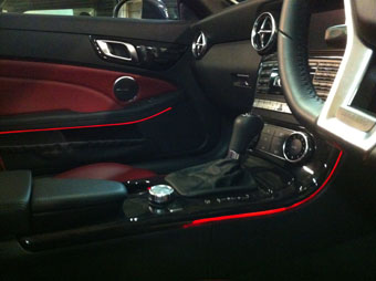 Parked in a dark underground car park and discovered that bits of the dash and doors light up with red strips. Also discovered that this is a £245 option.